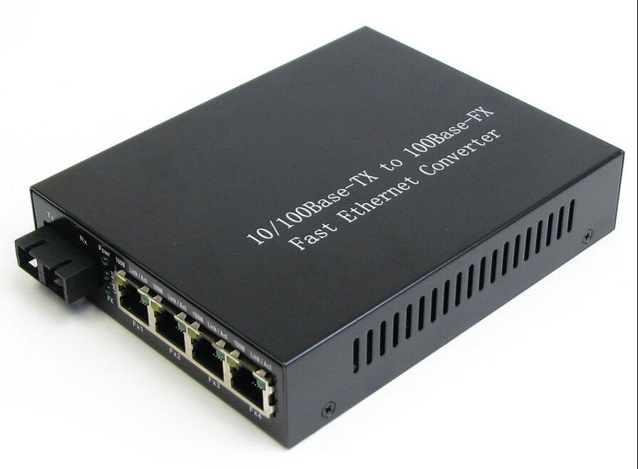 10/100M Glasfaser-Ethernet-Medienkonverter mit 4 RJ45-Ports und 1 Glasfaser-Port